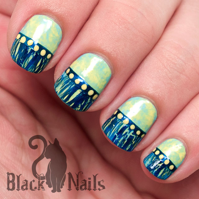 Yellow Blue Plastic Bag Marble And Crackle Nail Art