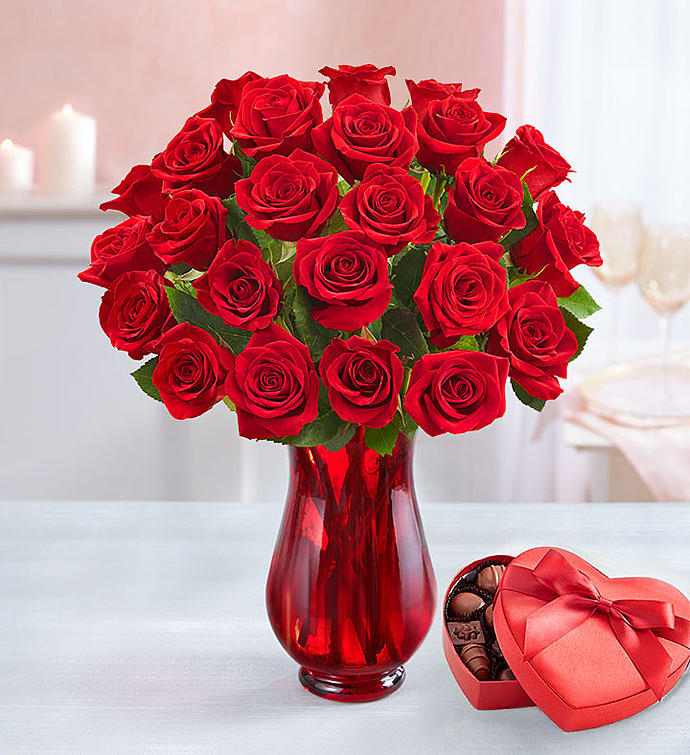 2 Dozen Red Roses Box Of Chocolates Bundle