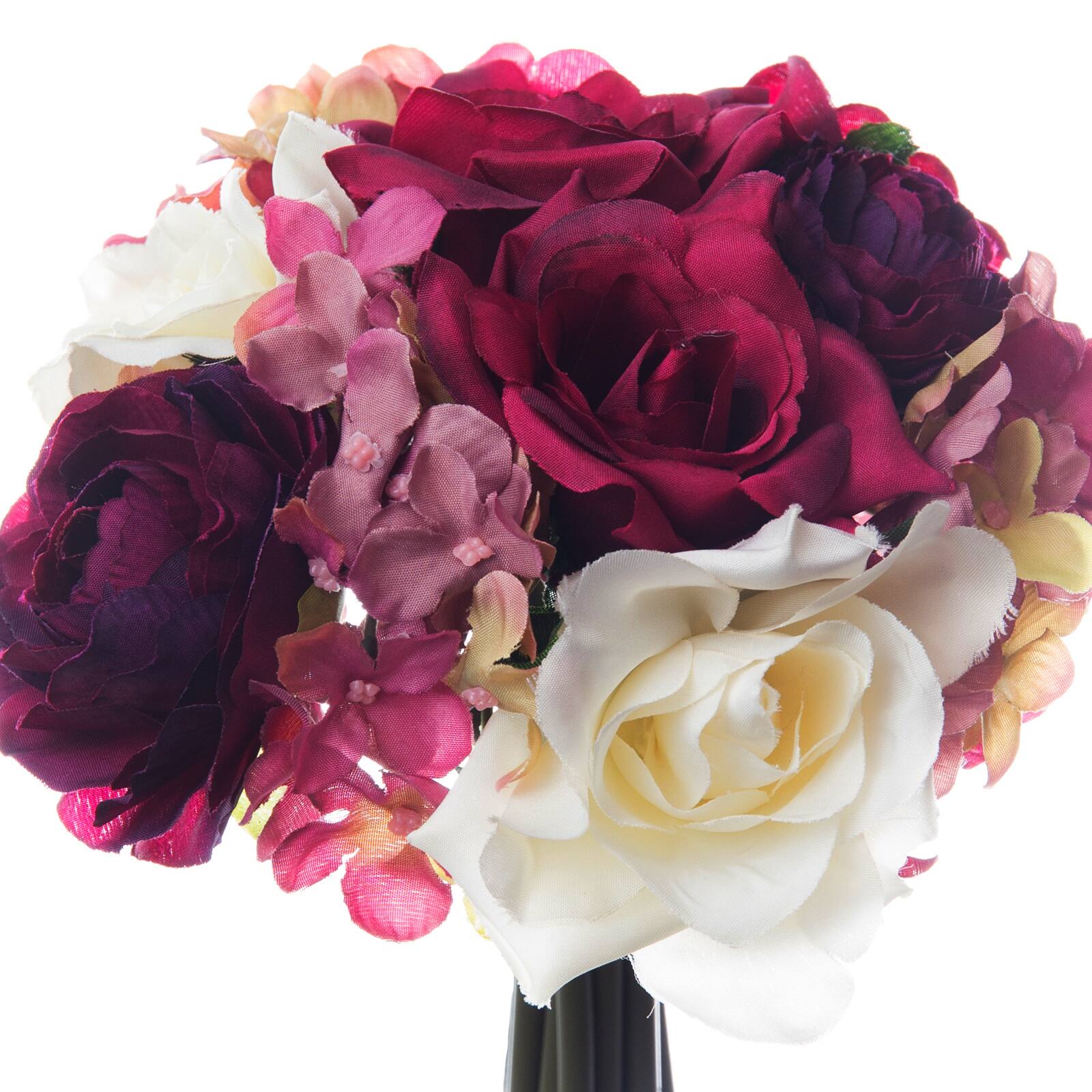 26cm Artificial Red Velvet Touch Rose Bouquet Bundle With 7 Large Flower Heads Home Wedding