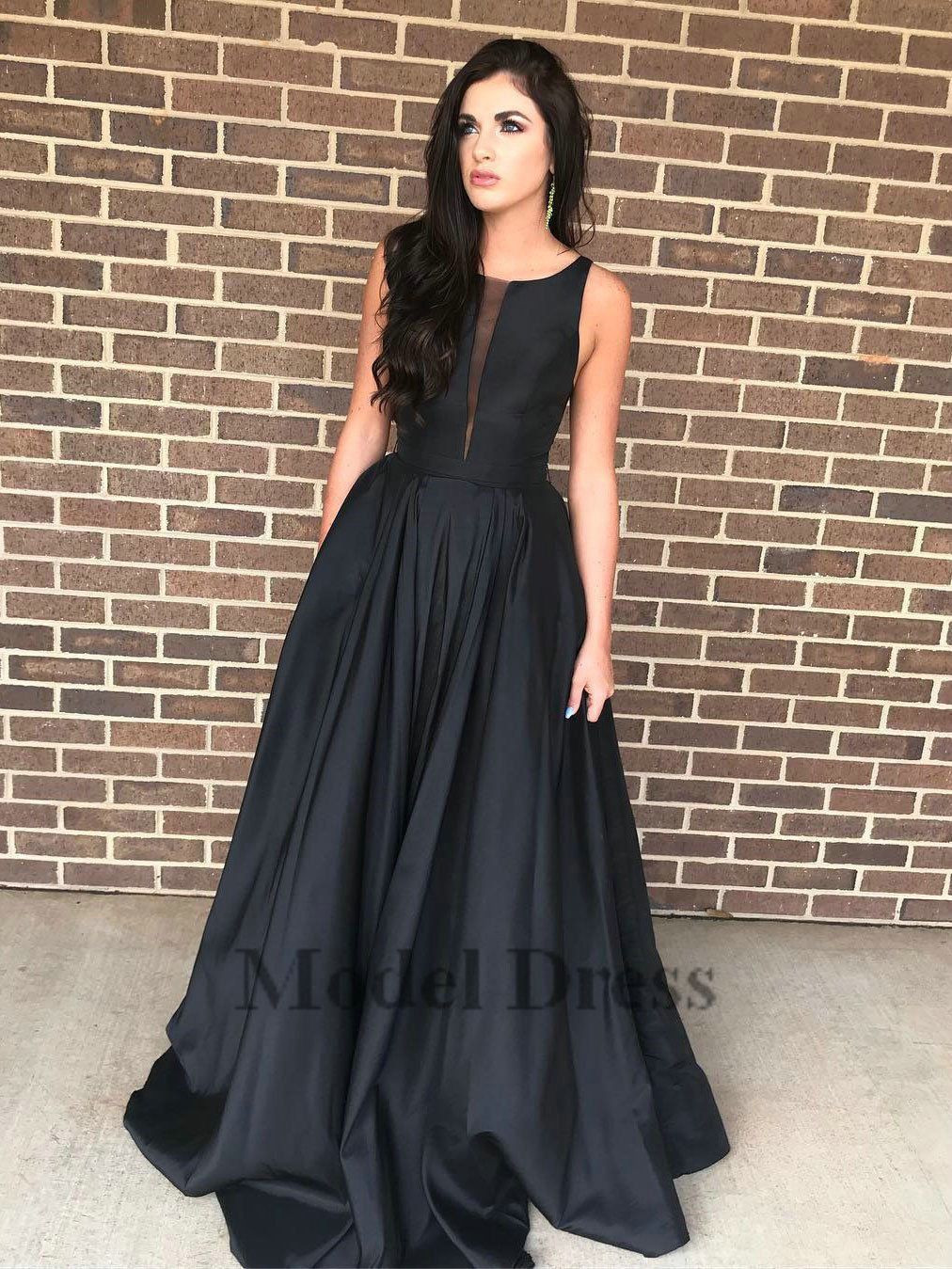 Satin Black Evening Dresses Elegant A Line Sleeveless Fashion